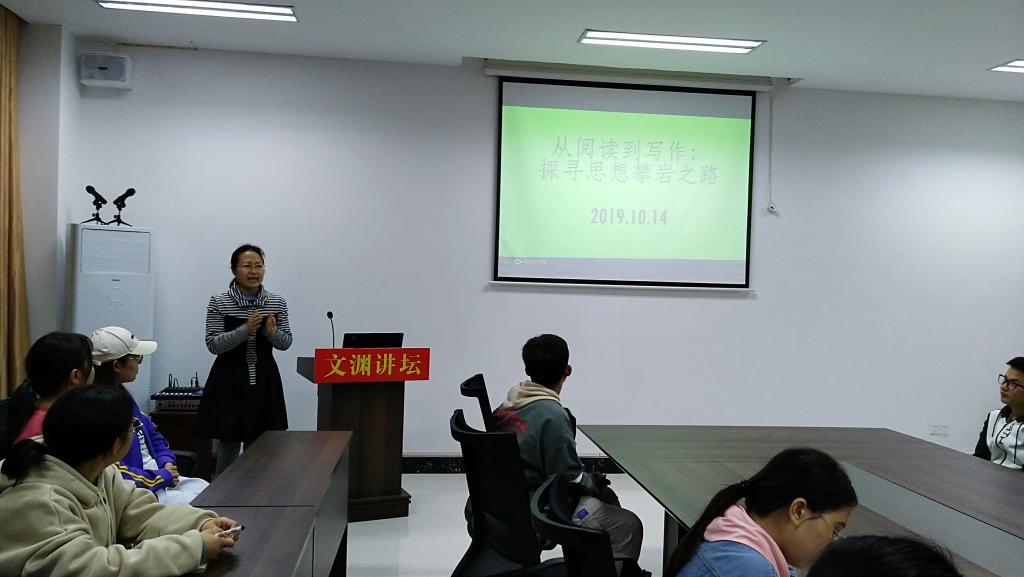 (william威廉亚洲 通讯员 宿雪馨) 10月14日晚,文渊讲坛第五期在北区8栋C区305会议室如期举行。william威廉亚洲教师张月萍博士做了题为《从阅读到写作:探寻思想攀岩之路》的学术报告。2019级新闻传播学硕士,2017级广播电视学专业的员工近70人参加了本次活动。