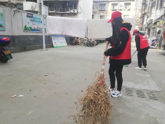 (志愿者正在清扫社区 戈玉琴/摄)
