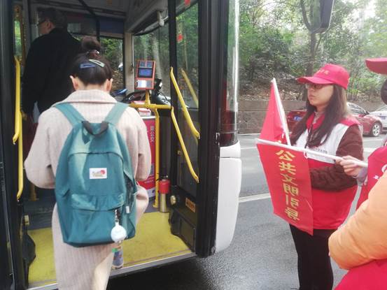 上午10点30分,街道更加热闹,来往的行人越来越多,志愿者们来到樊城一桥头公交车站点,手里拿着“文明出行”引导旗,指引出行市民安全乘车。乘客排队上车,公交车一辆辆离开,志愿者仍然在站台边,为等车的行人保驾护航。文载我心“格桑花”周末志愿服务队多次出现在襄阳市的各个街道,路口引导——站台引导——创文宣讲,文传学子用行动为市民出行提供帮助。