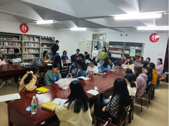 田金凤同学以问题“如果世界上没有一个人爱你,你还会活着吗?”为切入点,开始了自己对书籍《活着》的分享,讲述了作者余华的个人经历对书籍写作、人物刻画的影响。分享人表示,其分享的初衷是希望无论经历什么困难,都要向前看;胡艳同学则为大家分享了一部老电影《生之欲》,分享人哽咽地讲述了影片主人公渡边的改变与结局,胡艳同学从影片中不仅思考了人为什么要活着、又是为什么而活等问题,并且指出一个人的行为会对社会群体产生影响——“每个人都应该做发光的木炭,为人间燃尽温暖。”