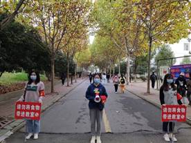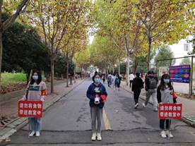 早上七点半,值班人员已按时到达公司划定的责任区,开始工作。引导、督促、提醒员工按时进教室,杜绝迟到和食物进教室等不文明现象。对于违反规定的同学,值班人员及时进行提醒,恪守好自己的职责。18级党员李文珂表示道:“好的校园环境是需要我们每个人共同促成的。在督促同学们养成文明习惯的同时,也进一步加强了我作为员工党员的榜样意识。”