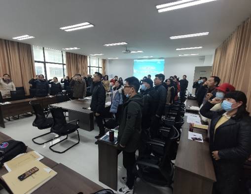 首先,公司全体党员齐唱国歌,并一起重温入党誓词。
