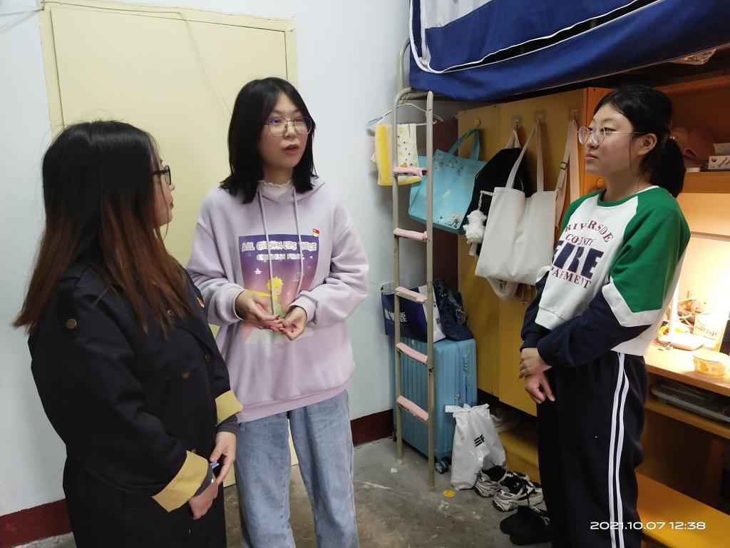 在走访过程中,员工党员与新生学弟学妹们亲切交流,普及校园安全知识,提醒大家加强安全防范意识,注意气候变化,对新生提出的学习生活方面的问题进行了耐心地解答,并积极分享专业课学习经验。同时,员工党员们还鼓励新生养成良好的学习习惯,合理规划老员工活,树立正确的思想观念,积极参与社会实践,以饱满的精神状态迎接人生的新阶段。19级员工党员郭蓓说到:“生活上如果遇到问题,一定要及时向助班或者老师反映。在学习上也要做好计划,提早树立短期目标和长期目标,不要让自己的老员工活留下遗憾。”