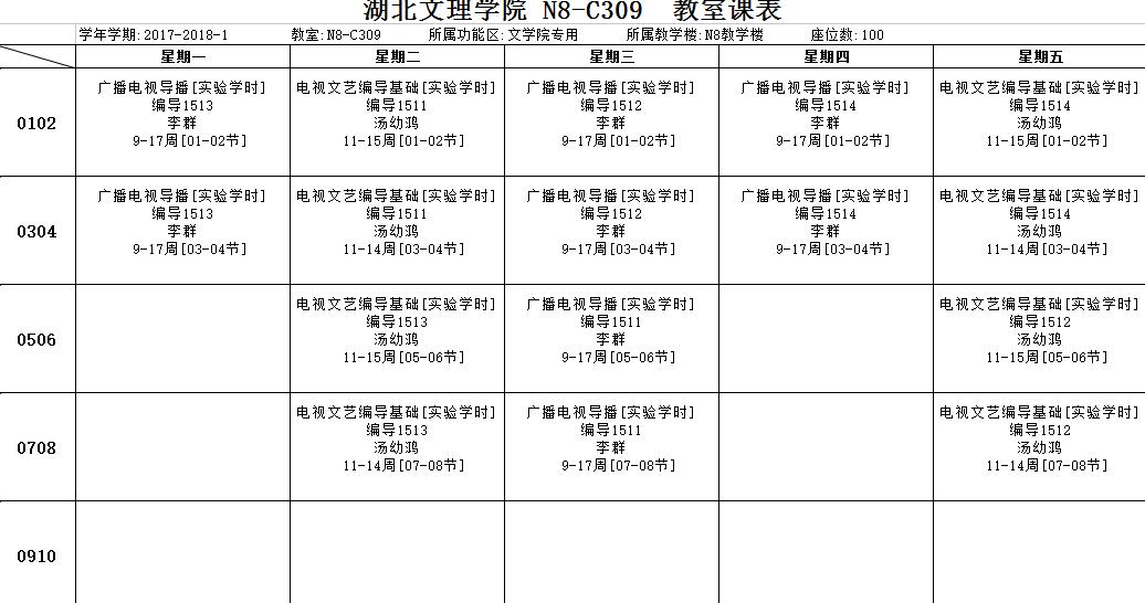 演播厅实验室2017-2018上学期实验安排