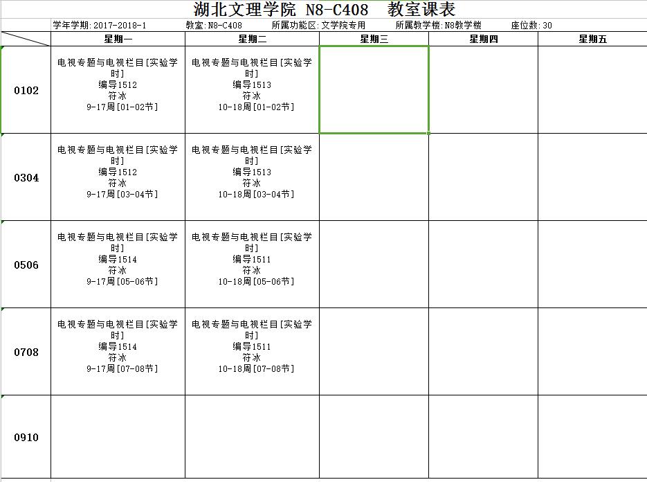 实验课表