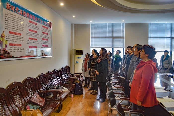 会上,全体教职工齐诵《新时代高校教师职业行为十项准则》,会议还就“创文”迎检等相关工作进行安排部署。