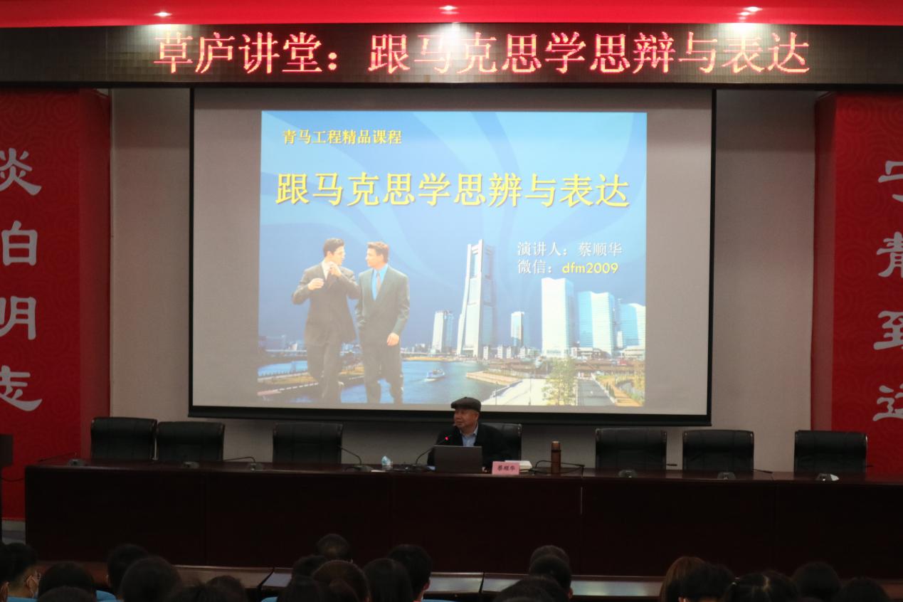 蔡顺华从马克思的魅力、跟着马克思学思辨、跟着马克思学表达三个方面展开讲座。“《共产党宣言》的第一句话是什么?”蔡顺华向在场的同学们抛出了这个问题。蔡顺华由浅入深、旁征博引讲述了了马克思传奇的一生,并鼓励同学们通过各种形式的演讲来提高自己的表达能力。