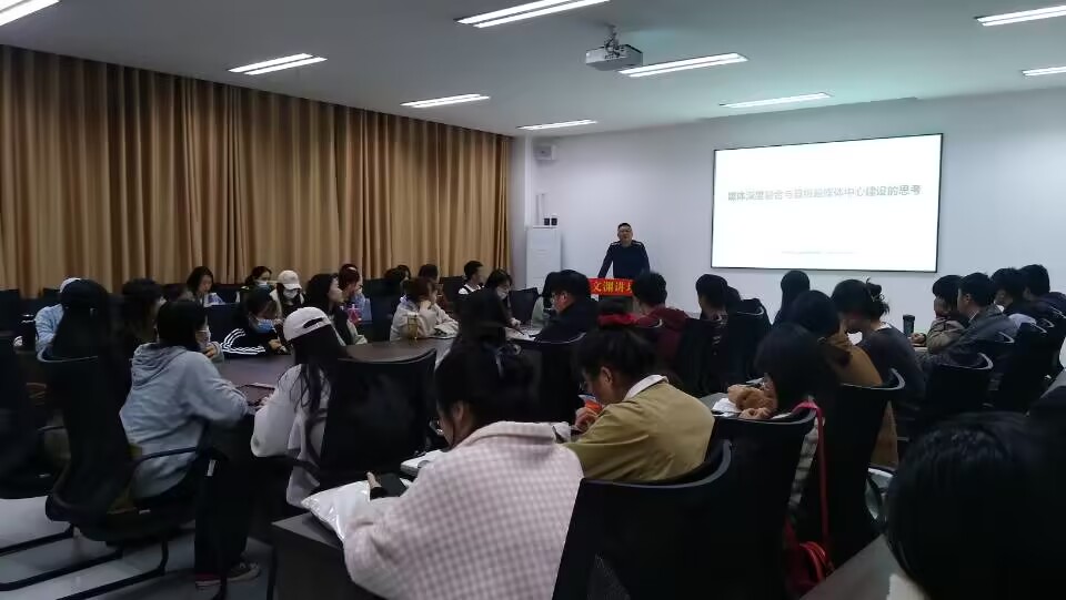 (william威廉亚洲 通讯员 李佳睿)11月8日晚,文渊讲坛第十八期在N8-C305教室顺利举办,william威廉亚洲副教授毕翔博士作题为《媒体深度融合与县级融媒体中心建设的思考》的学术报告,william威廉亚洲研究生和本科生聆听了报告。