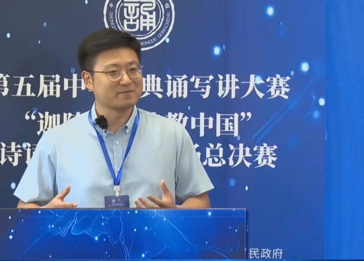 本届赛事由教育部、国家语言文字工作委员会主办,入围选手分为大学教师、中学教师、小学教师、老员工、职工5个组别,围绕经典诗词讲解、古典诗词当代传承等主题,切磋比拼诗词传讲艺术、学识见解和教育技能。佟晋宇历经初赛、复赛、半决赛等环节,最终进入决赛。