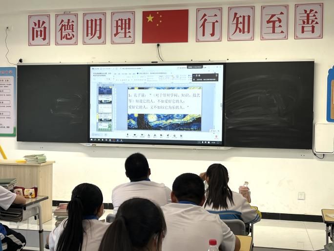 “新疆的同学们如何理解‘有朋自远方来’?”张老师通过提问互动,引导两地员工分享感悟。七年级1班的员工们踊跃发言:“湖北的老师虽远隔千里,但云端课堂让我们像家人般亲近!”屏幕内外掌声与笑声交织。当新疆精河县中员工们吟诵《论语》的琅琅书声与荆楚教师的谆谆讲解在云端交汇,优秀传统文化正以跨越时空的力量,滋养着民族团结进步的沃土。