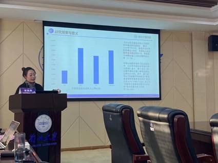 冯晓娜同学汇报的主题是“网络暴力主体低龄化现象分析”。网络暴力主体低龄化趋势逐年上升,已然成为突出的社会问题。通过案例总结青少年网络暴力行为发展模式,对网络暴力主体低龄化现象的内外诱因进行分析,从青少年家庭、公司、媒体、政府方面提出具体有效的应对措施。